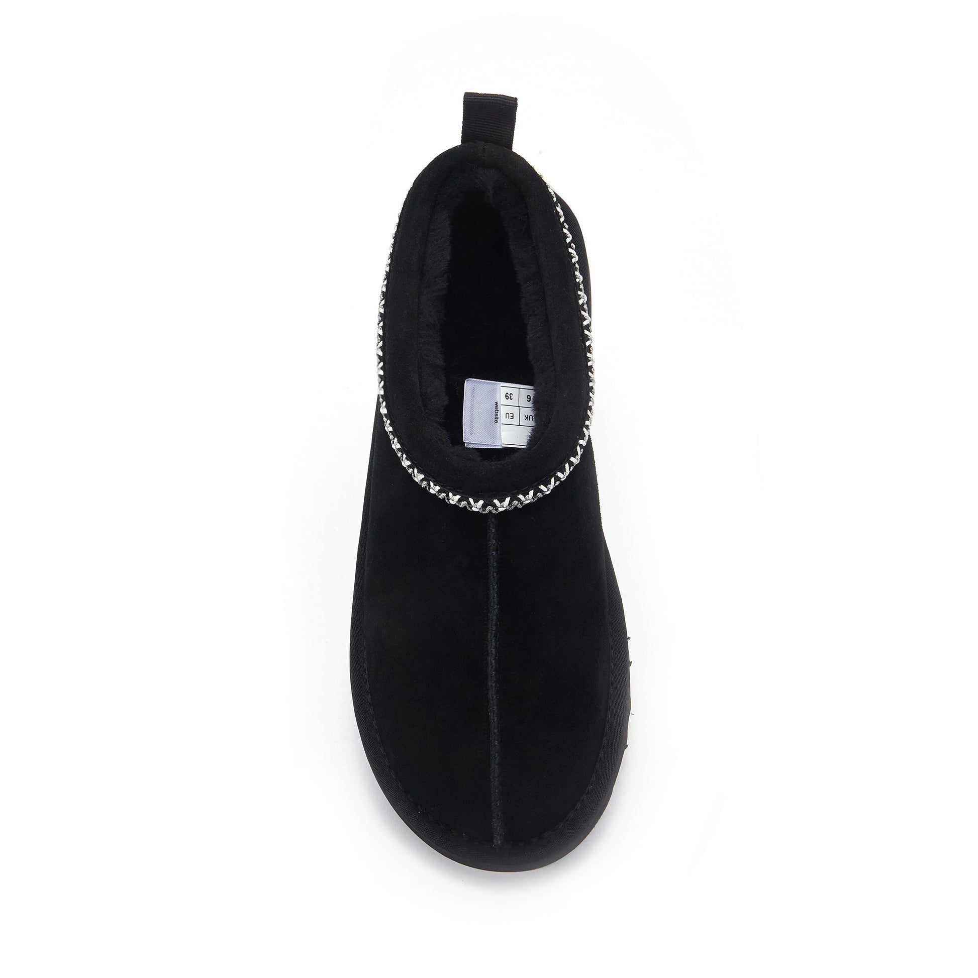 Ultra low cut shoe with rubber sole that can be worn both in and outdoors. Suede outer with contrast braid detail. Lined in super soft pure sheepskin.