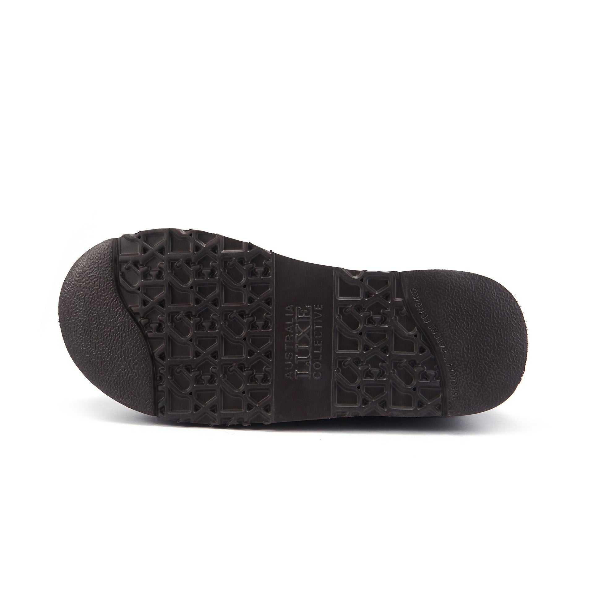 Ultra low cut shoe with platform sole. Suede outer with contrast braid detail. Lined in super soft pure sheepskin.