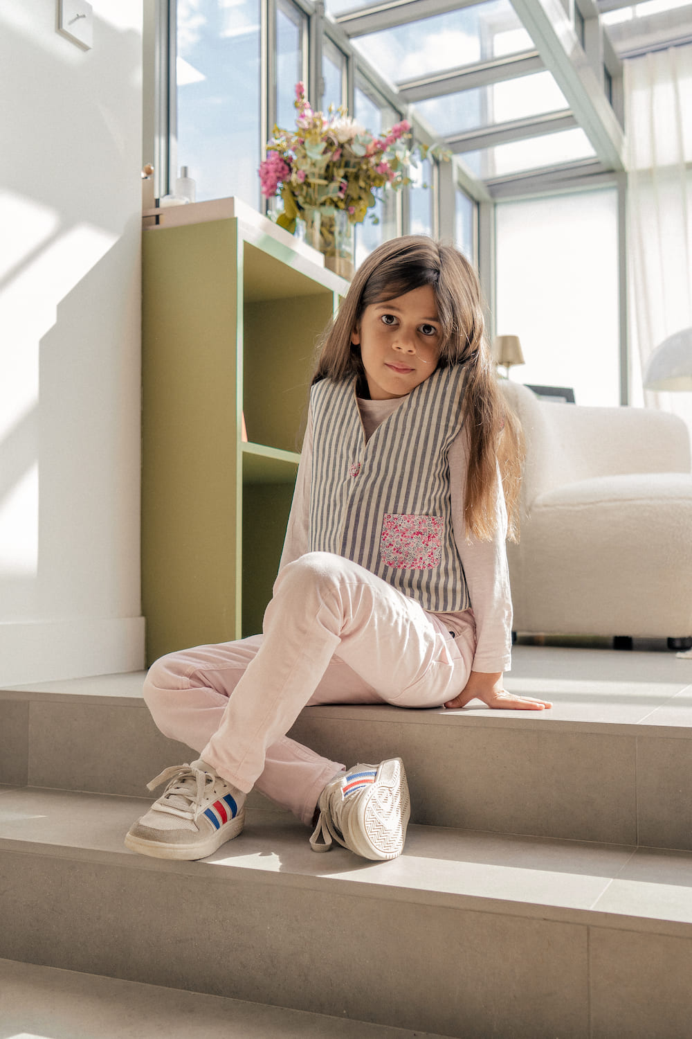The upcycled Griotte-Tagada vest alternates between softness and character, suiting all styles and seasons. It is made in our workshop in Madagascar. Note: Teddy toy not included.