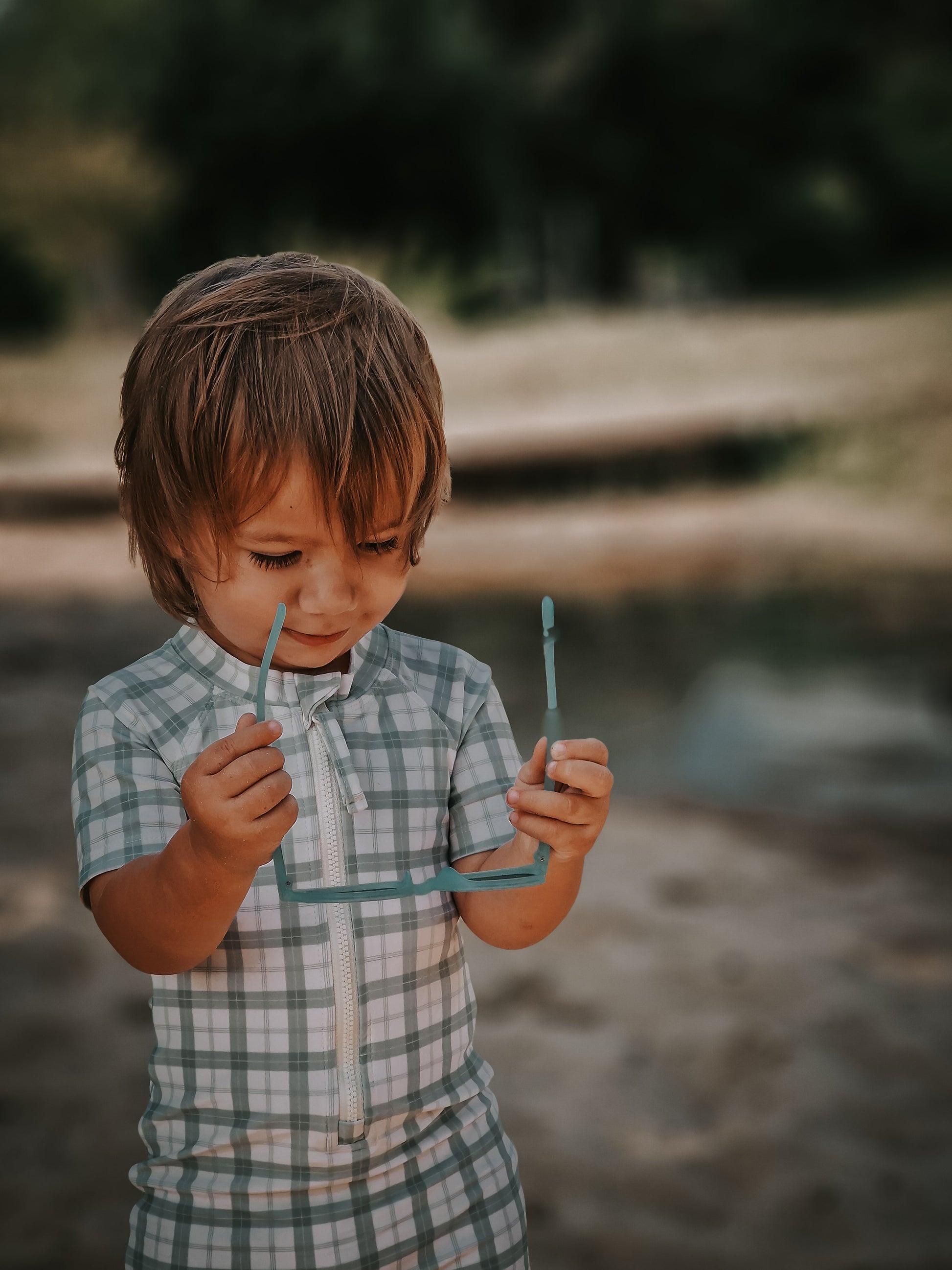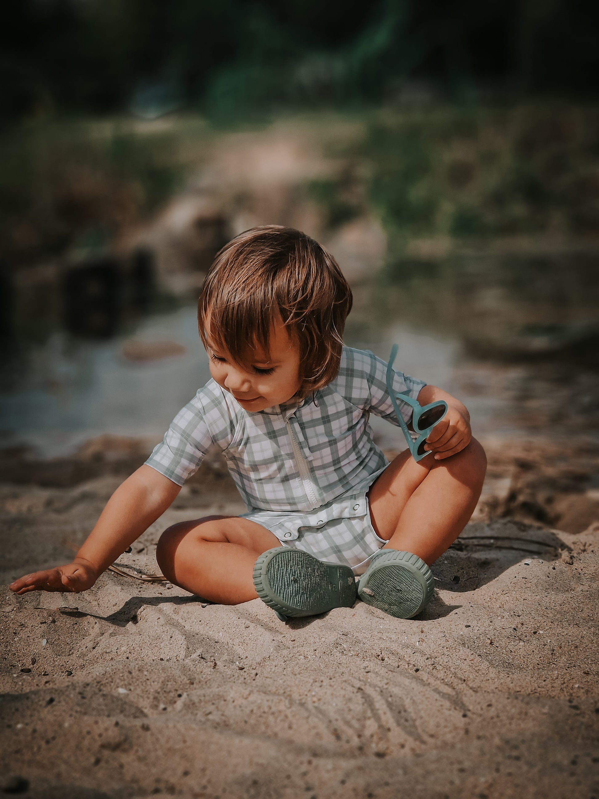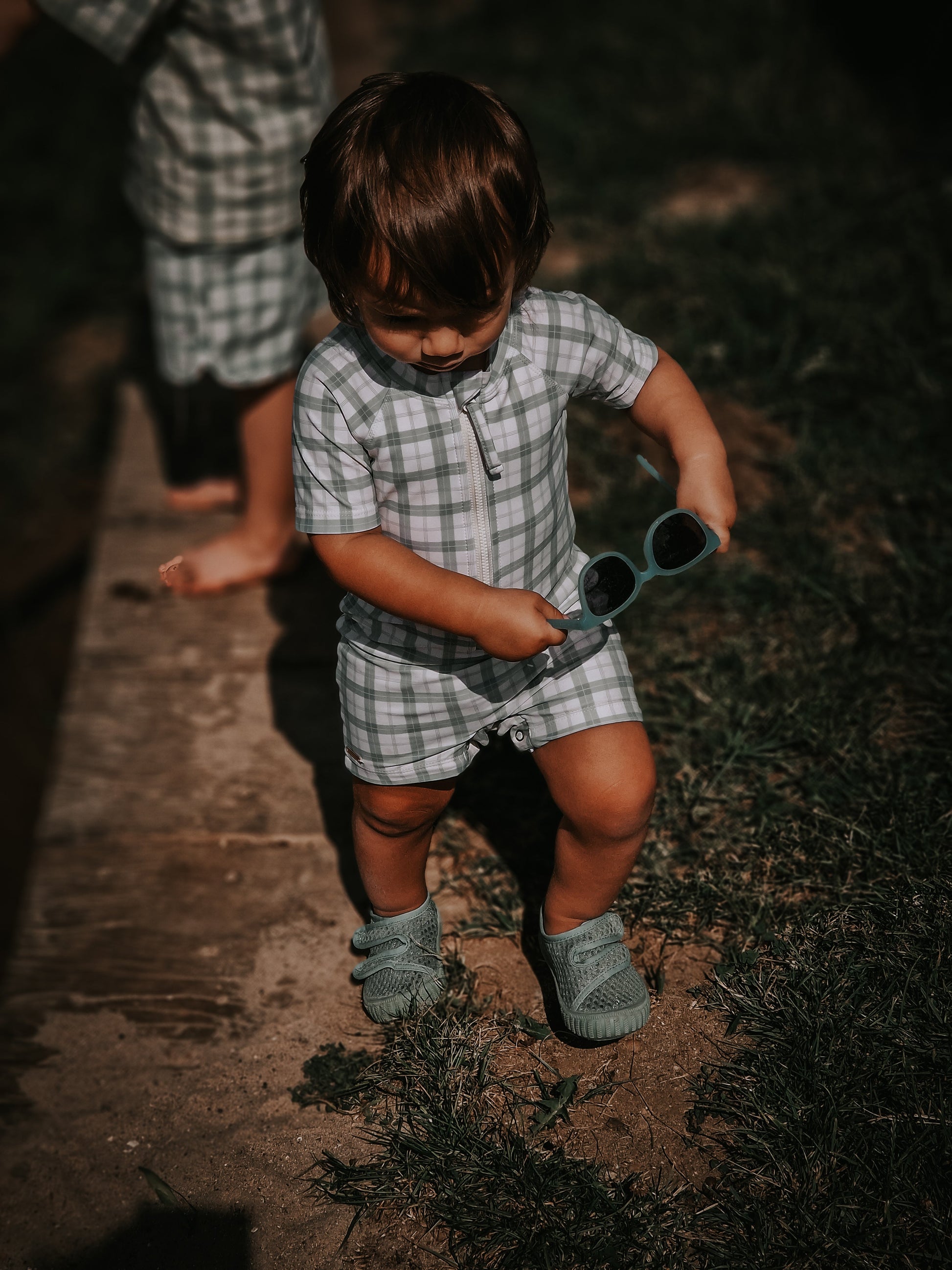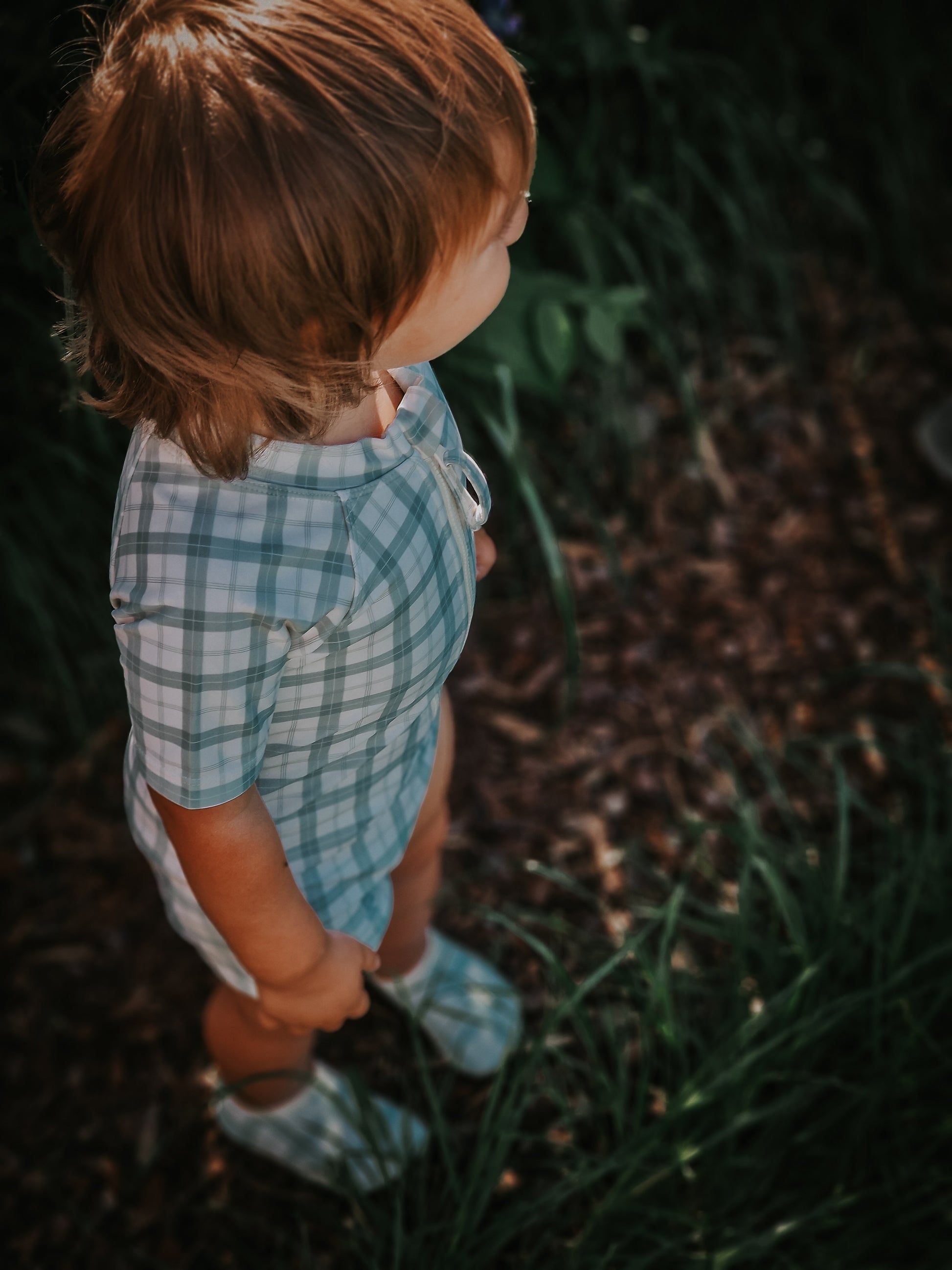 Short Sleeve Rashguard Swimsuit | UPF + Recycled - Fern Plaid