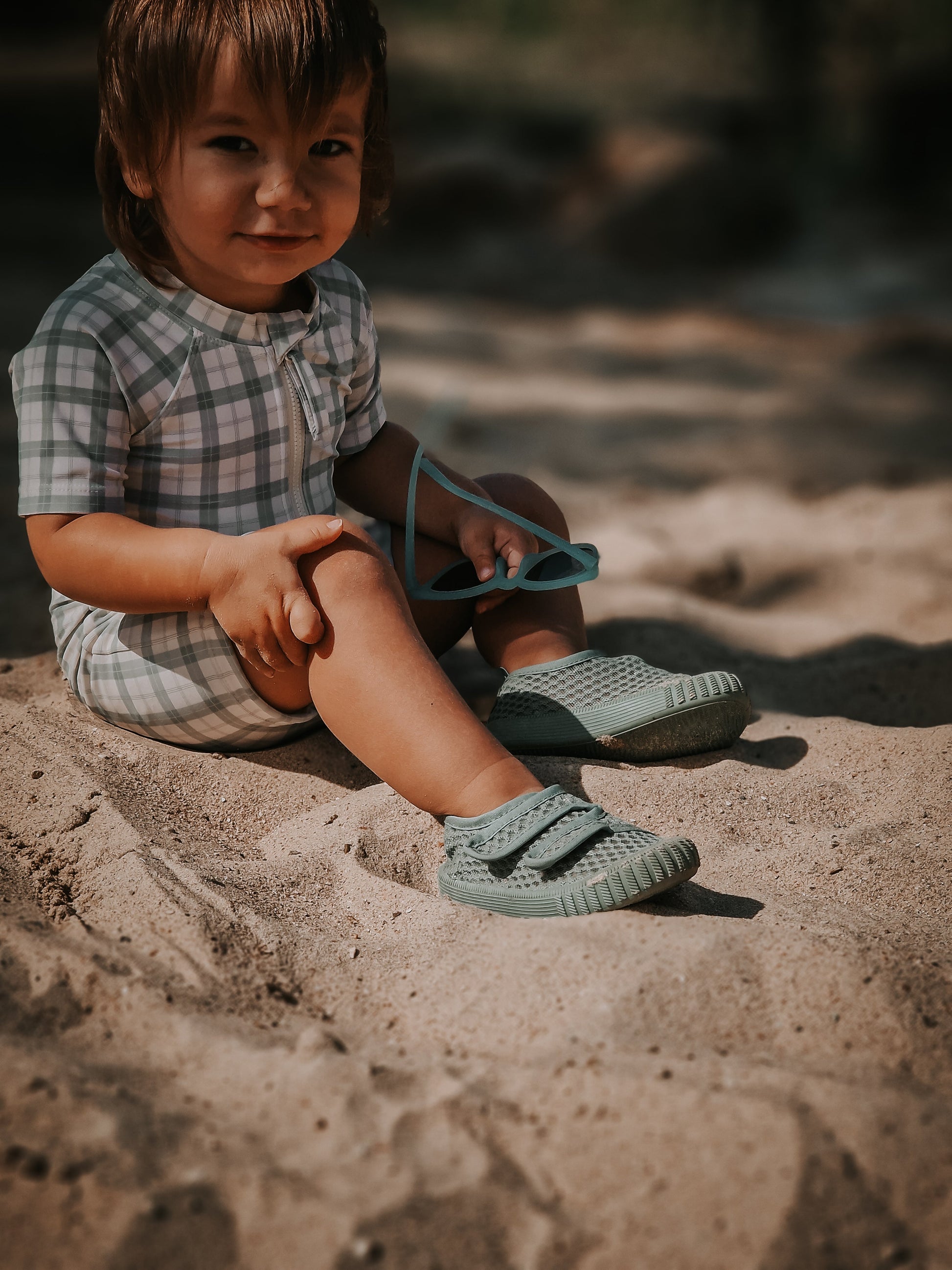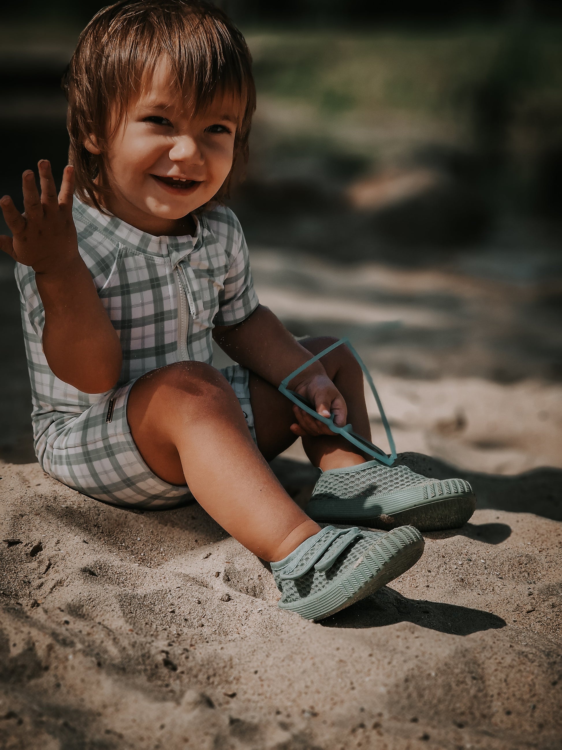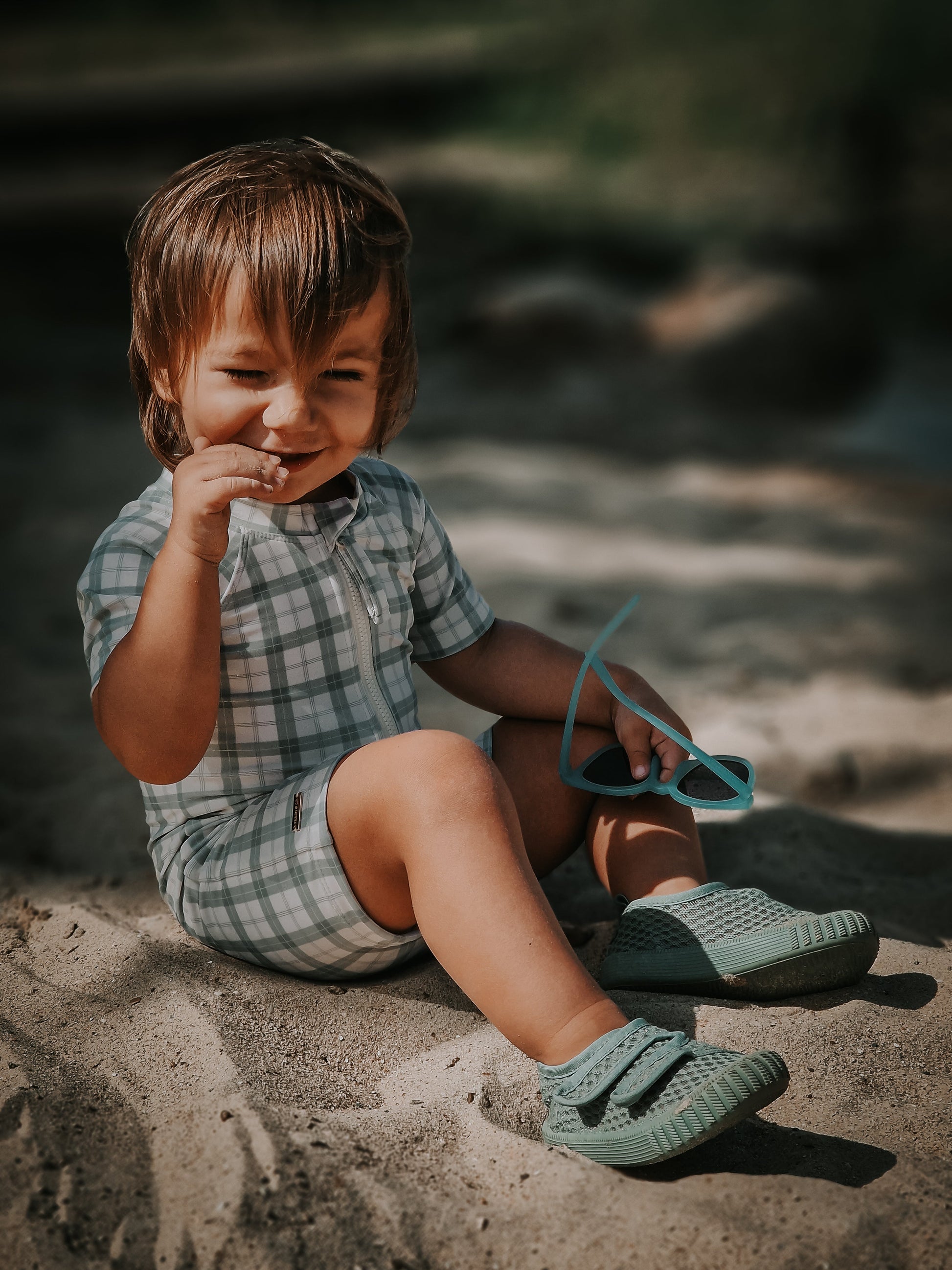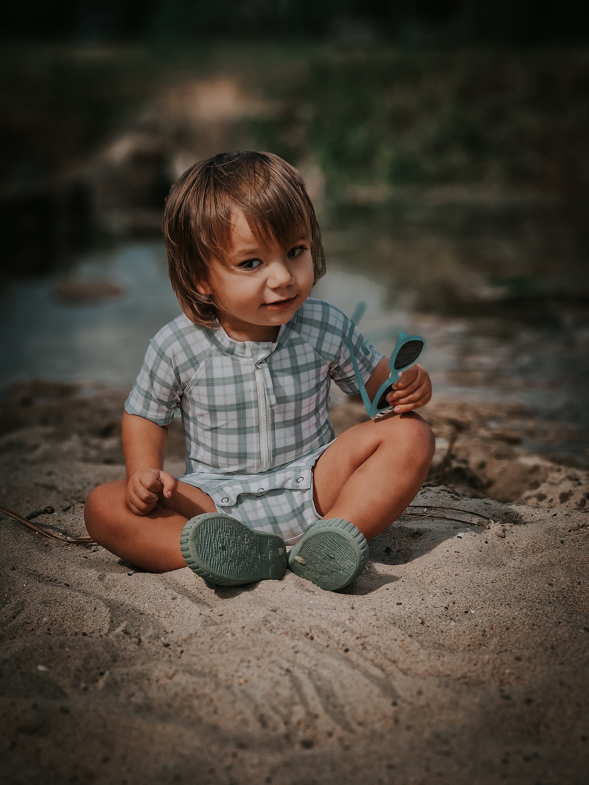 Short Sleeve Rashguard Swimsuit | UPF + Recycled - Fern Plaid