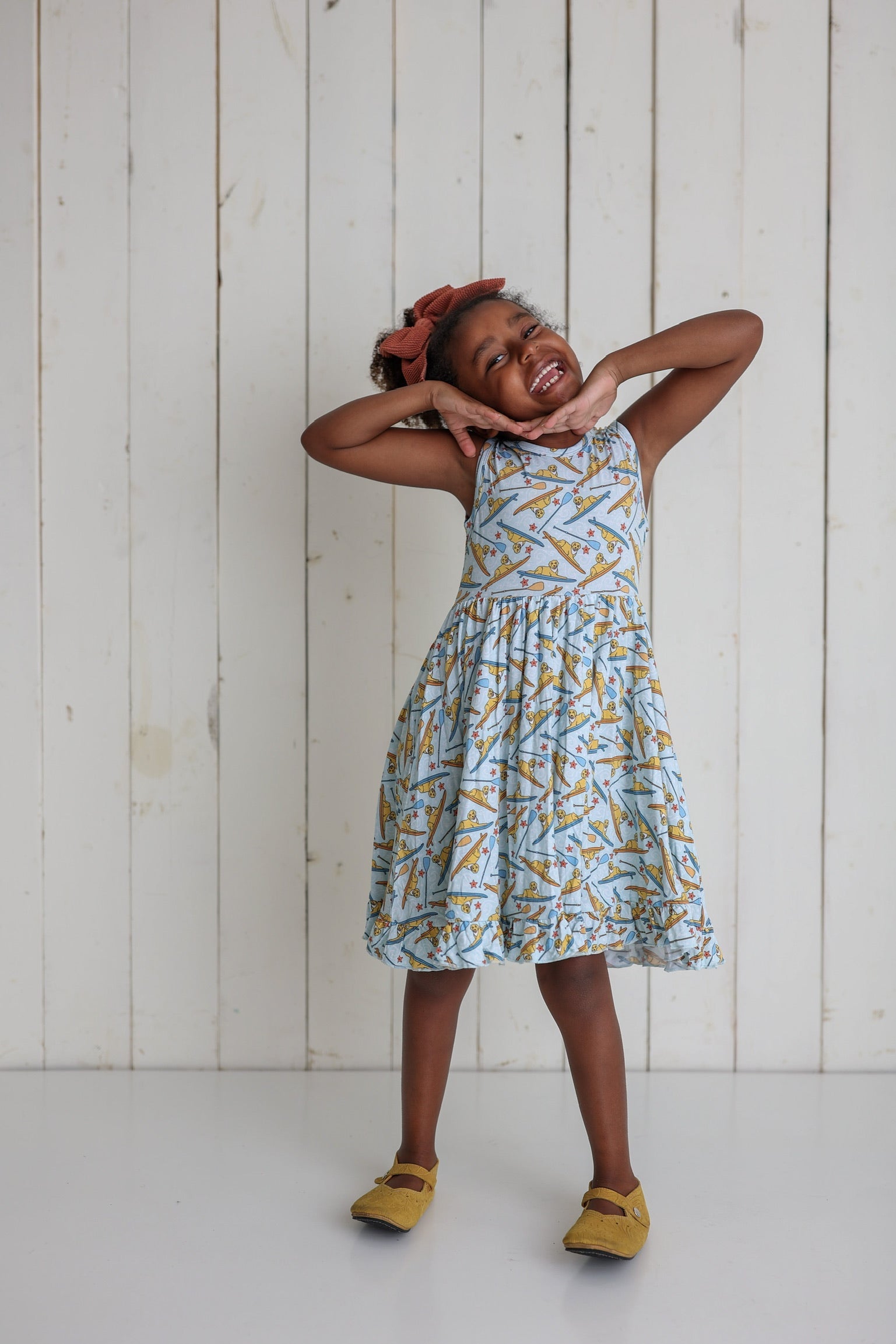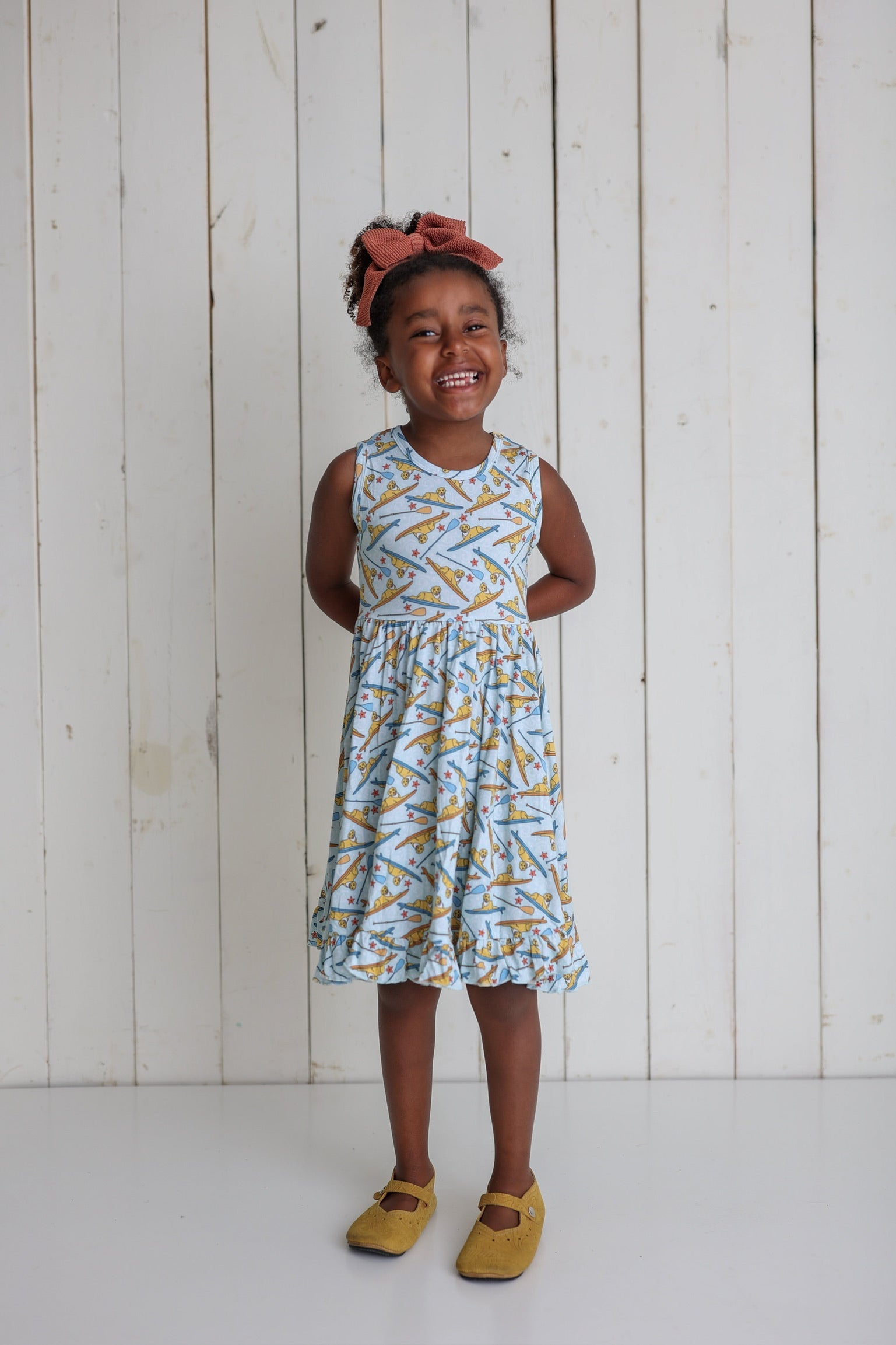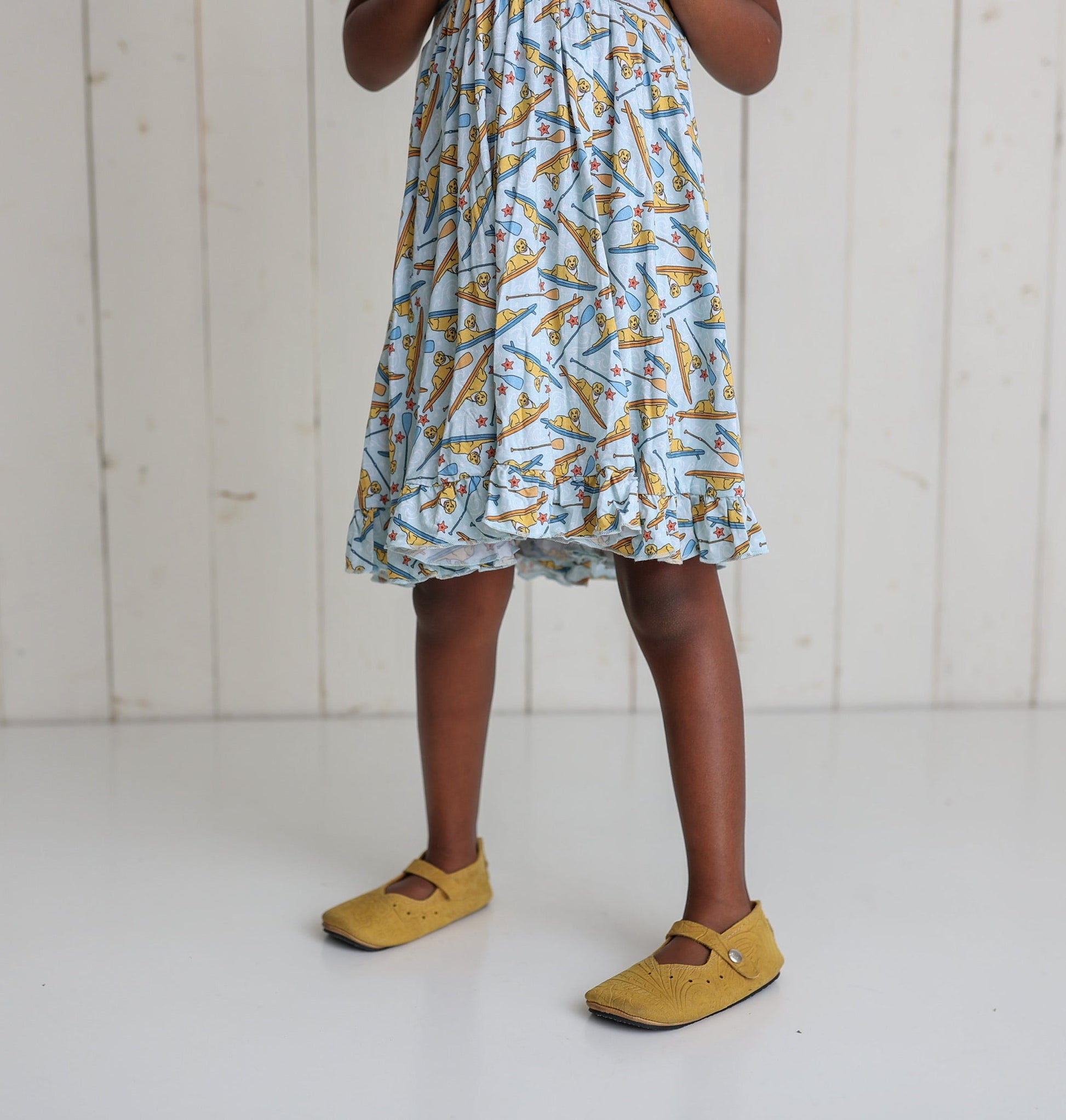 This Stay Golden Dream Ruffle Dress is the perfect summer essential for your darling girl. Spun from bamboo for a playful look and feel, this dress will help her stay golden all season long!
