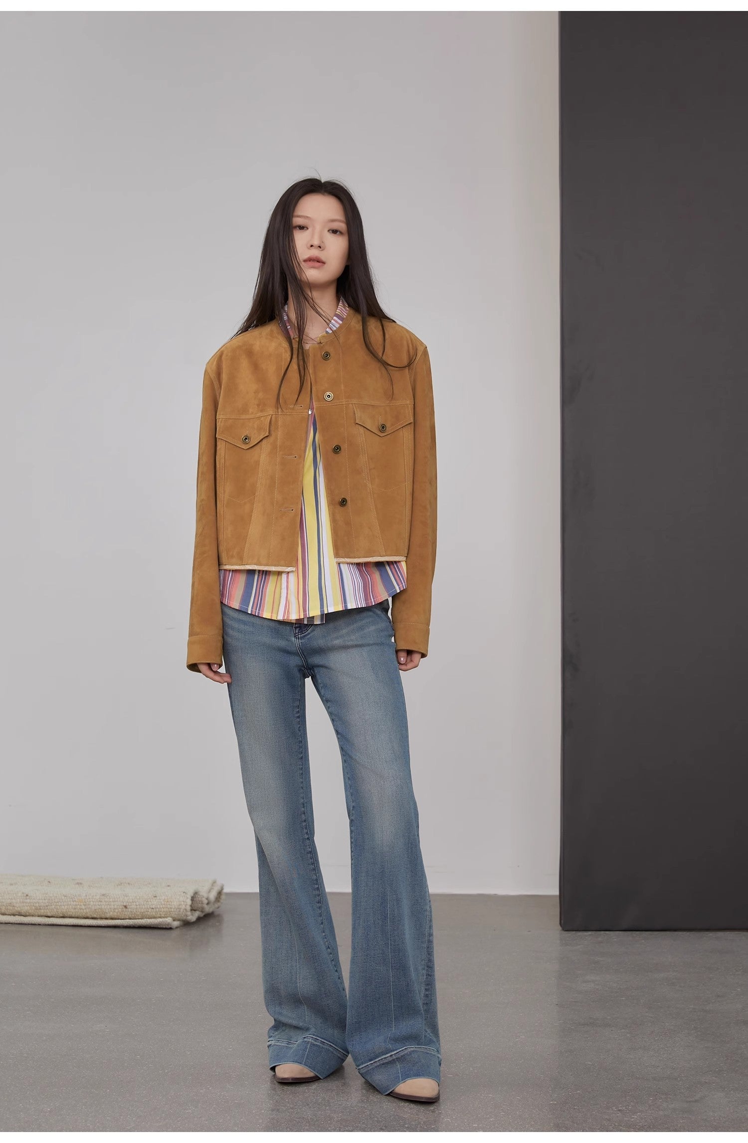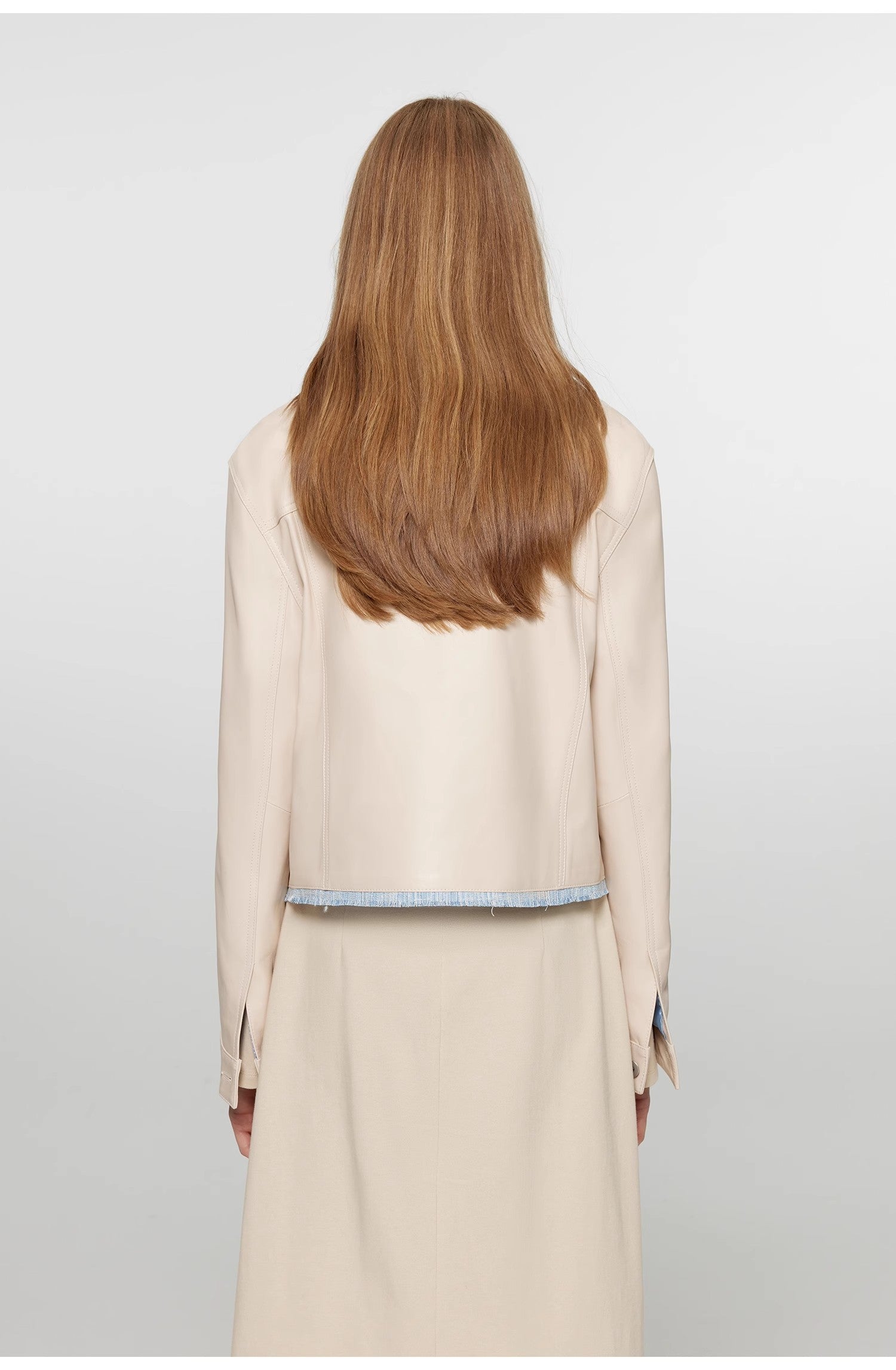 Inspired by the classic boxy jacket, this improved version with small structured shoulders brings a unique and stylish twist. It kicks off the FireladyFur early spring leather jacket trend, redefining the fashion aesthetic for urban women.