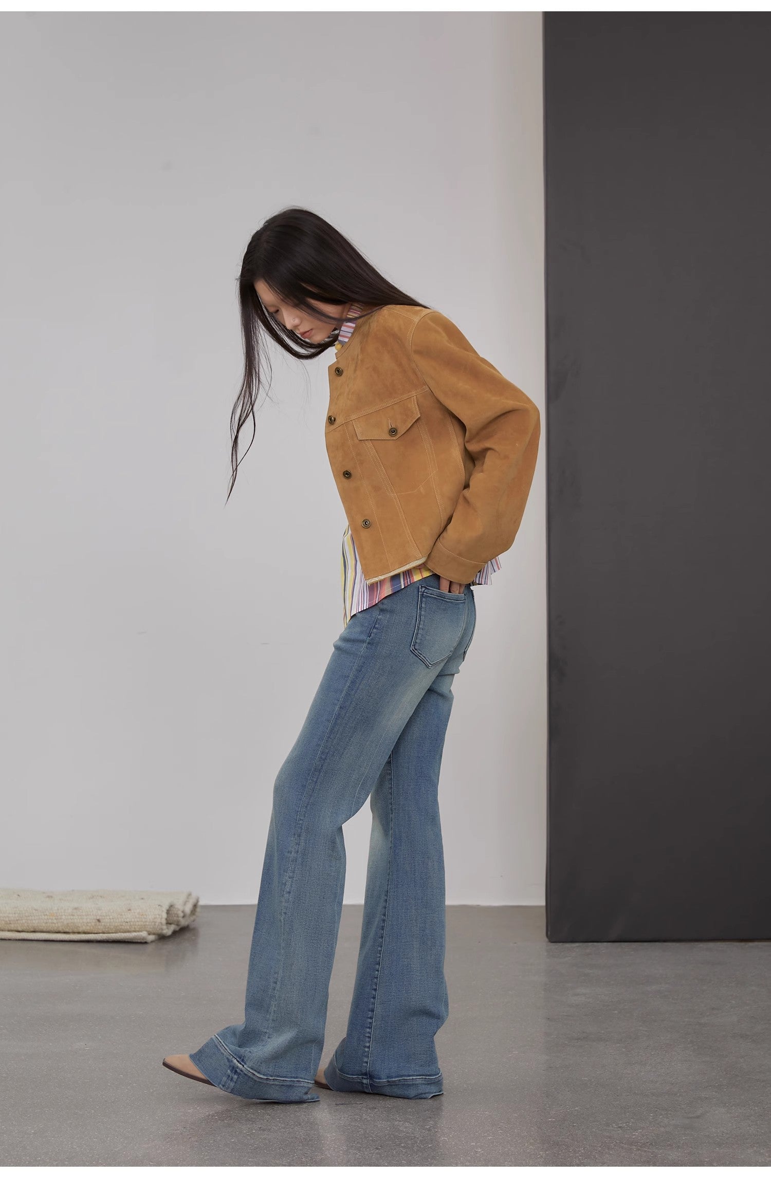 Chromium-Free Tanning Process with High Standards for Leather Quality, Providing a Lightweight Feel without Pressure. The Grain is Fine, Even, and Reflects the Natural Beauty of New Zealand Sheepskin. The Leather Features a Lustrous, Flowing Grain Pattern with Clear, Beautiful Texture. The Finished Garment Combines Soft Resilience with a Sense of Weight, Offering Both Comfort and Wearability with Functional and Stylish Appeal.