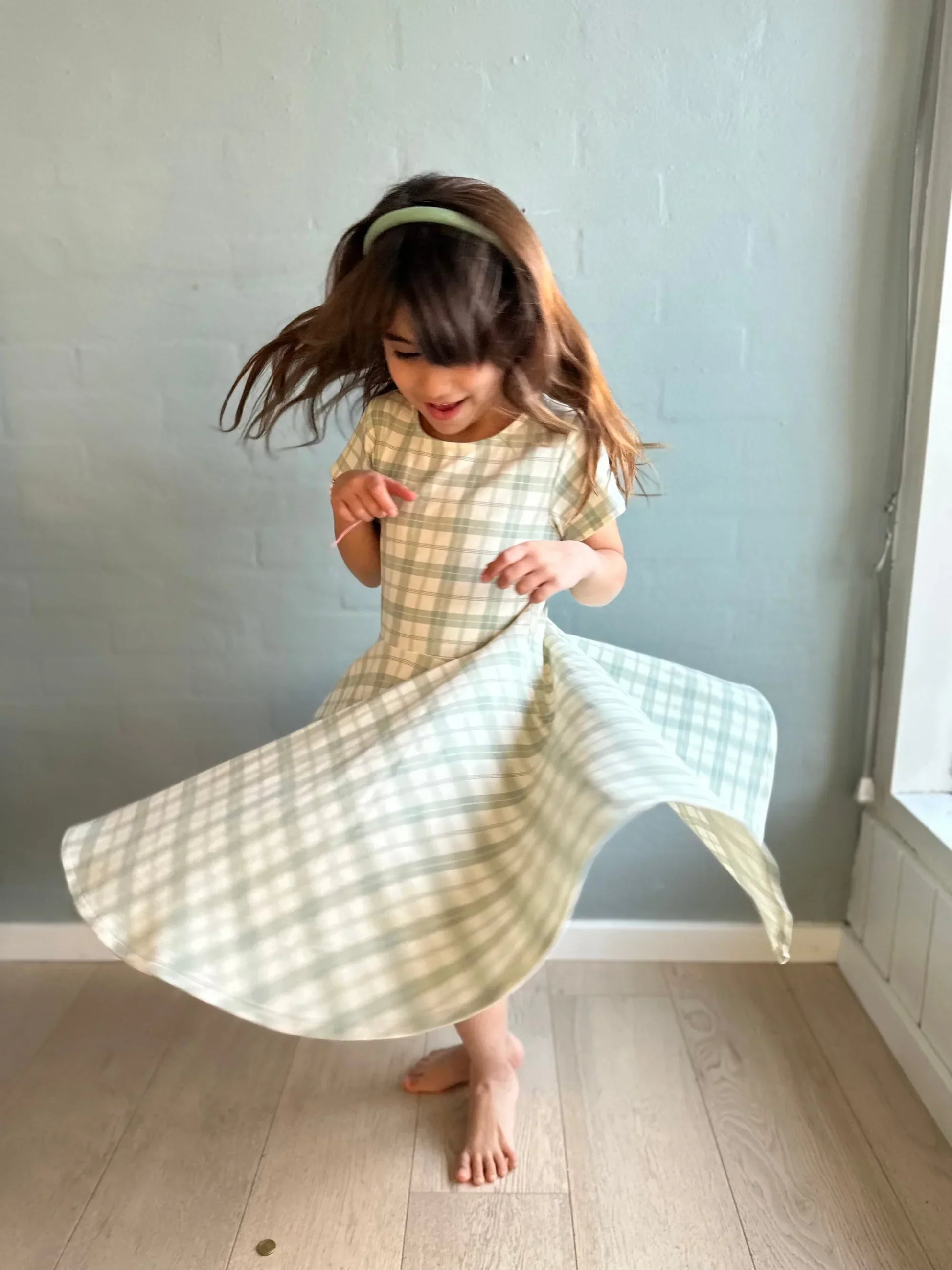 Sweetheart Twirl Dress | Organic Cotton Jersey - Fern Plaid
