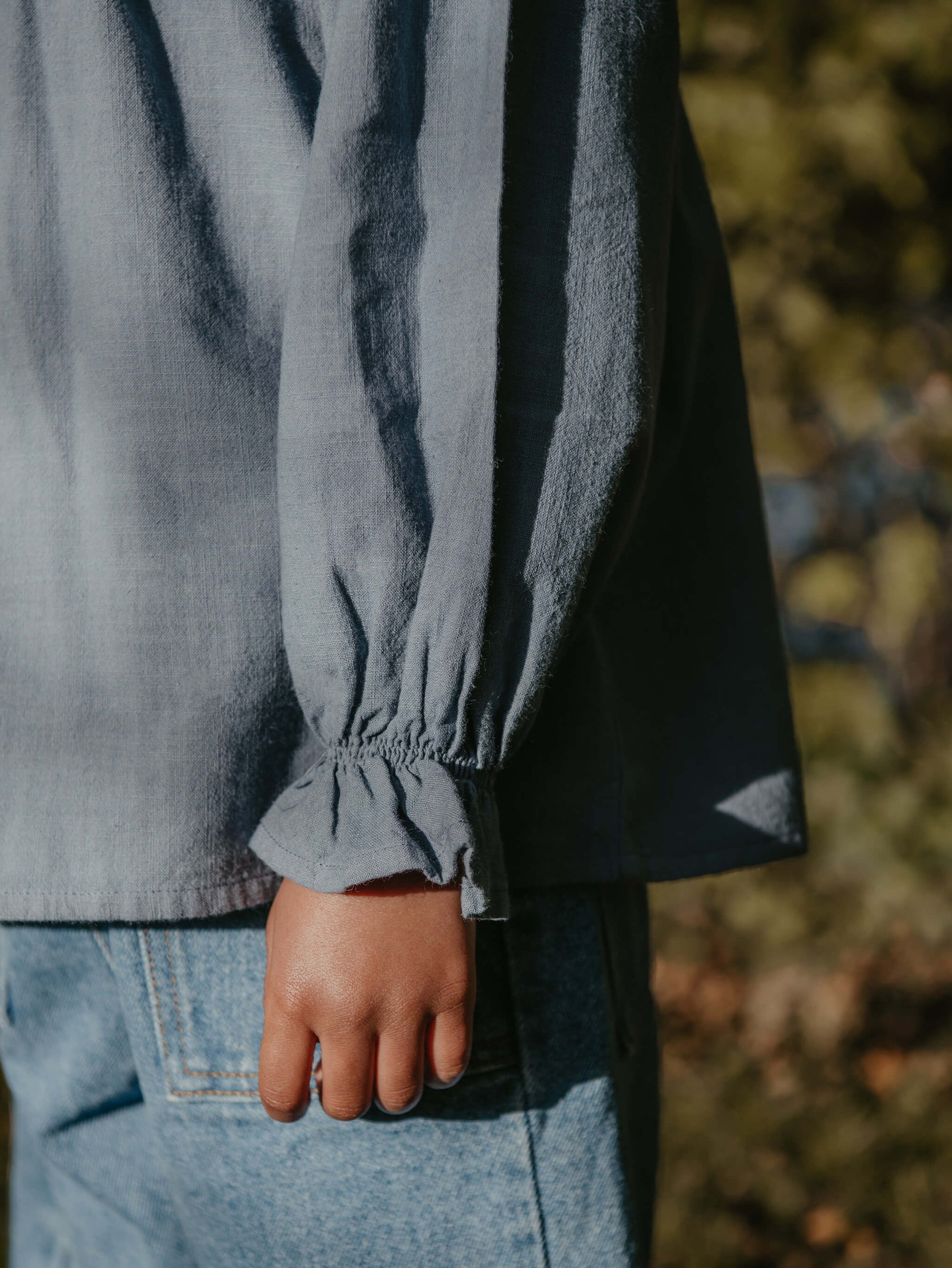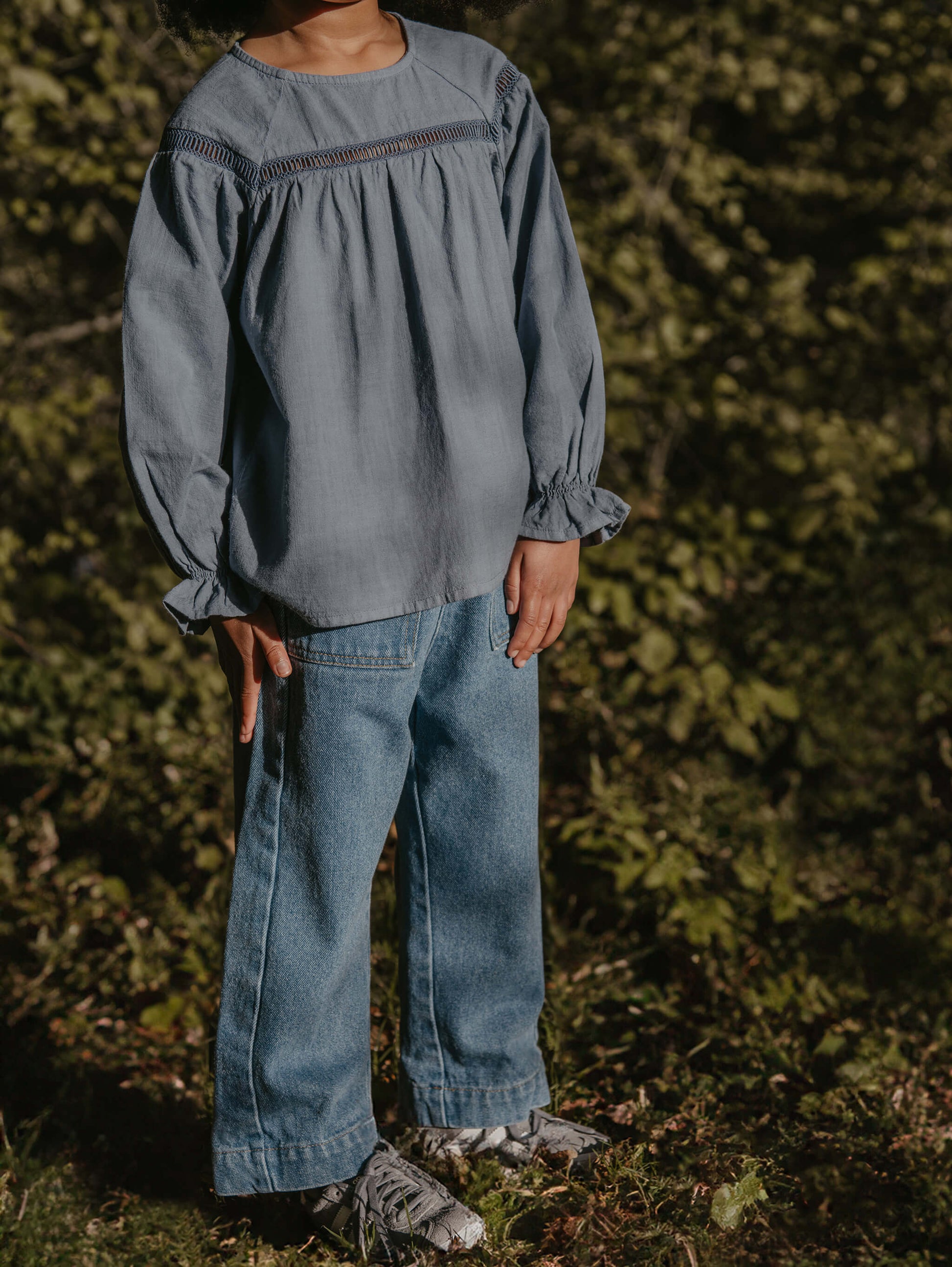 Crafted by artisans from soft, organic cotton voile, The Beatrix Top for children is light, breathable and perfect for warm weather. The delicate ladder stitch embroidery and ruched, elasticated sleeves are both comfortable and effortlessly stylish. We love this top with our new Straight Leg Jeans, too.