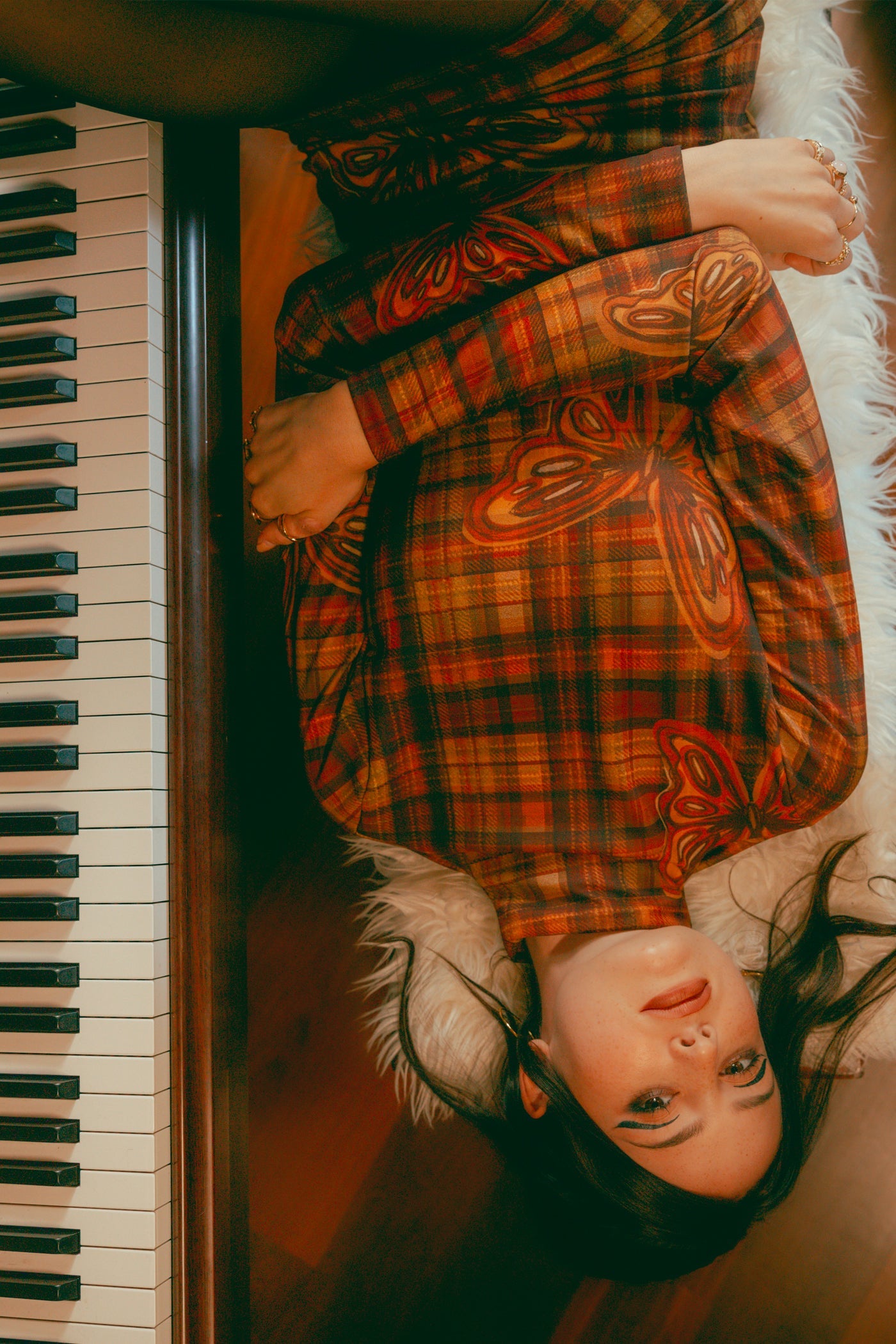 Presenting The Joni Monarch Long Sleeve Mini, a flawless earth-toned dress blending a cozy, rustic plaid design with intricate hand-drawn butterflies.The turtleneck adds a touch of warmth and comfort, while maintaining a sleek and refined appearance. Expertly crafted from a premium heavyweight knit with spun yarns, this dress boasts a subtle texture reminiscent of vintage styles, and is lined with ultra-soft cotton in smoky topaz.