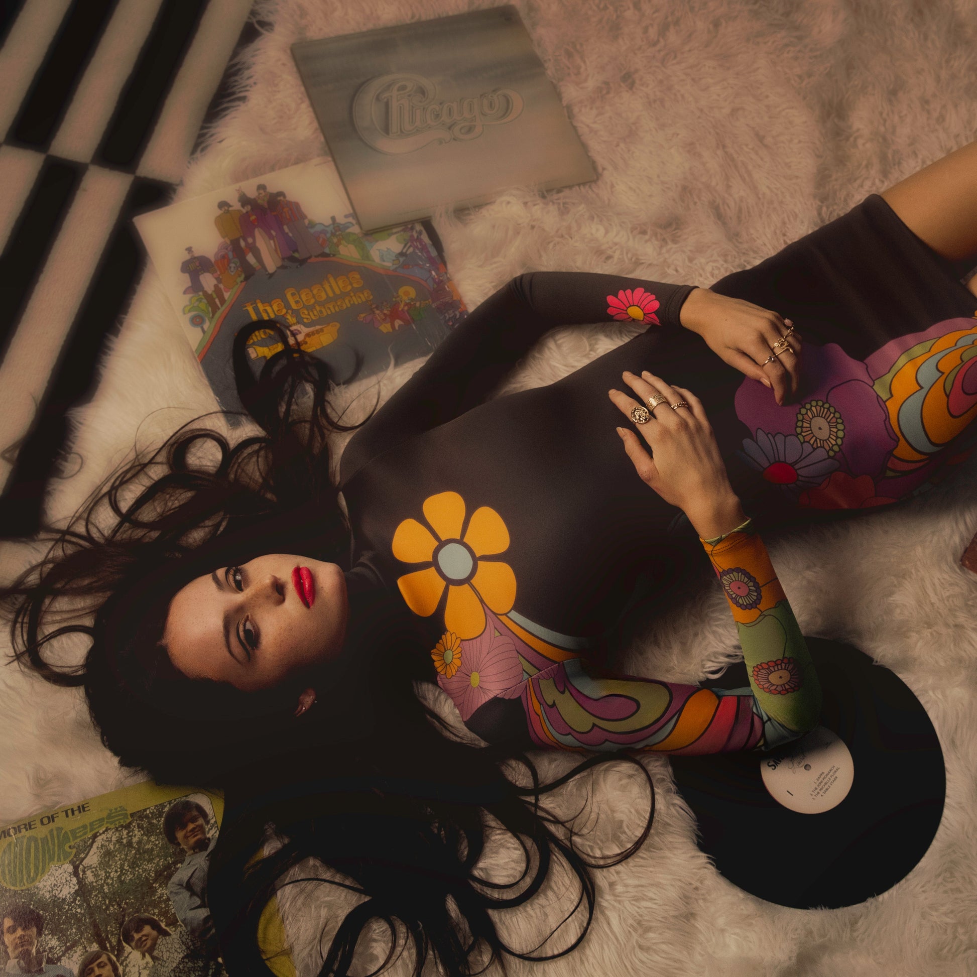 Meet the groovy Zappa Long Sleeve Mini featuring a hand-drawn triptacolor floral design drawing inspiration from the late 1960's wild-child counterculture. This chic dress boasts a turtleneck for added sophistication, without compromising on warmth. Meticulously crafted with a heavyweight knit for support and breathability, and lined with a velvety soft black cotton jersey, this dress exudes playful sophistication.