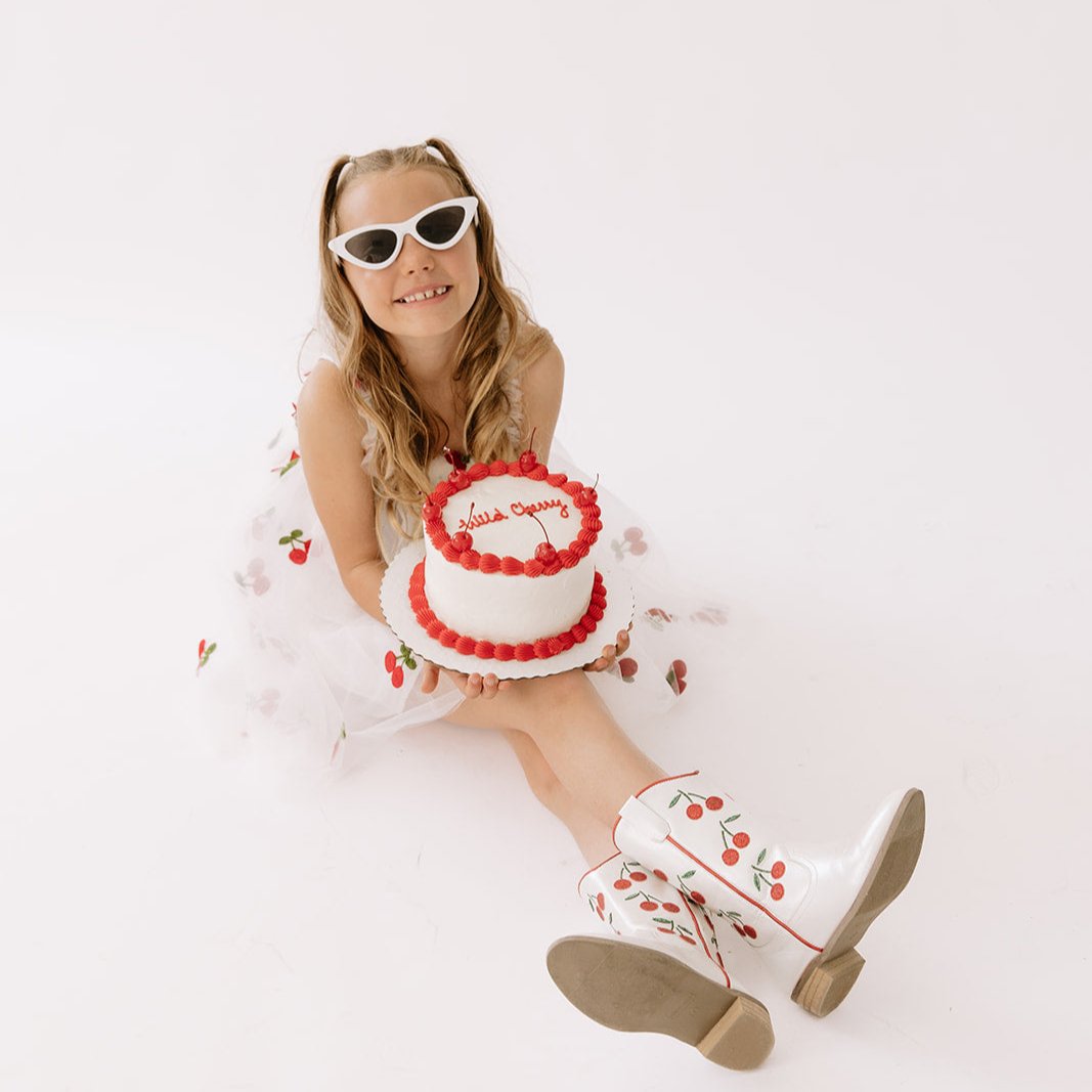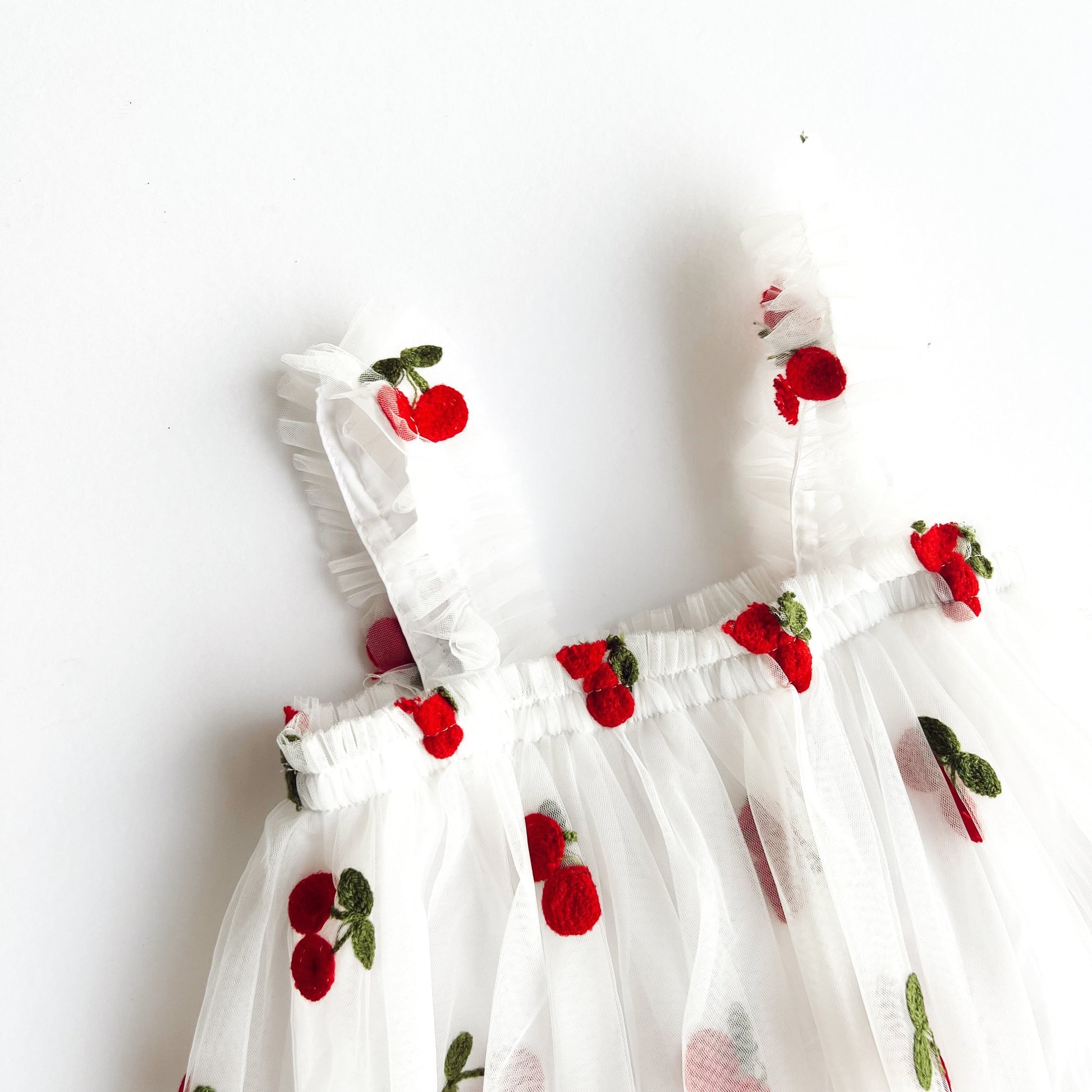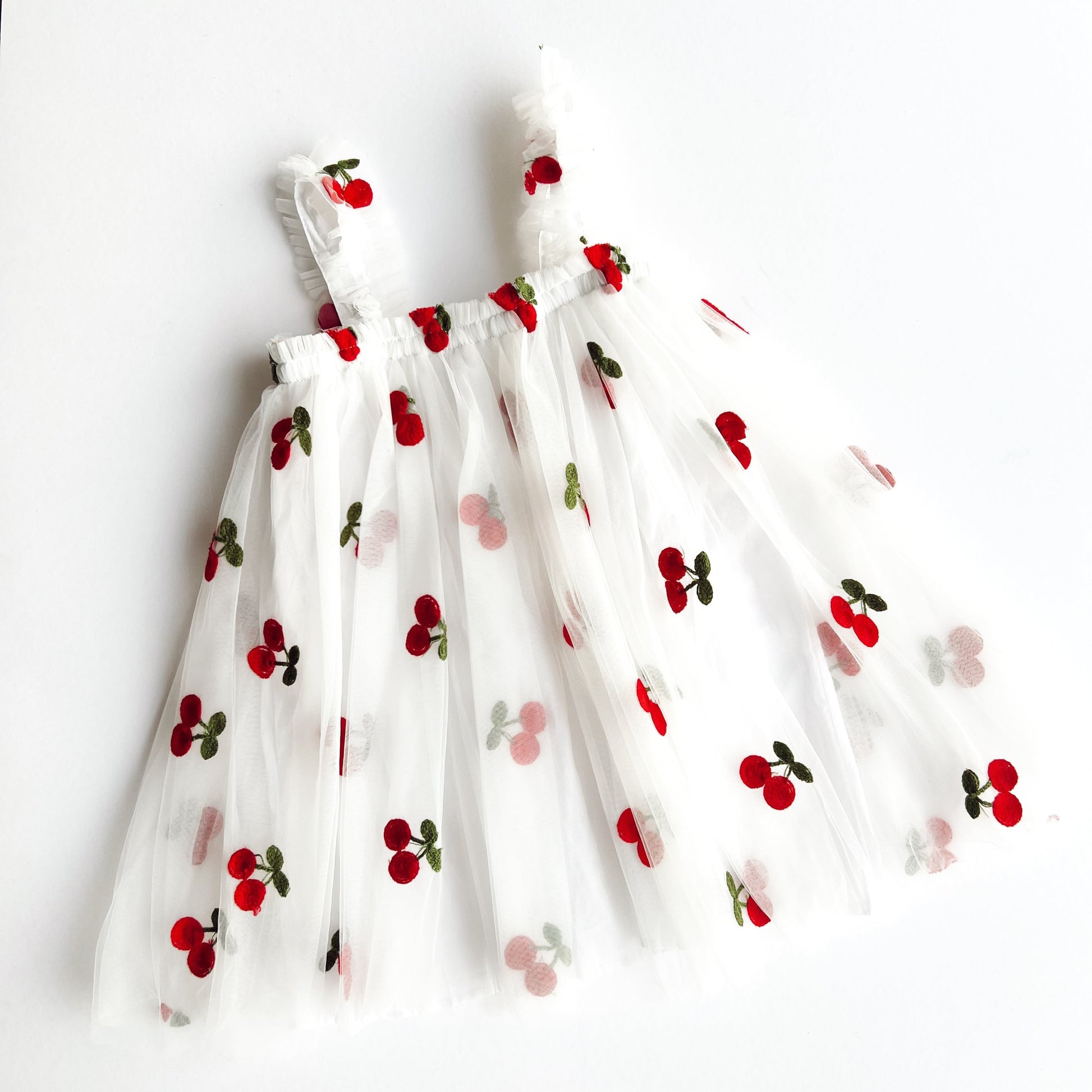 The Sweet Cherry Dress is made for sunny days full of giggles and twirls. With a classic cherry print puff sleeves and a floaty tulle skirt this dress is bursting with sweetness and whimsy. From birthday parties to everyday play it’s the perfect mix of charm and comfort.
